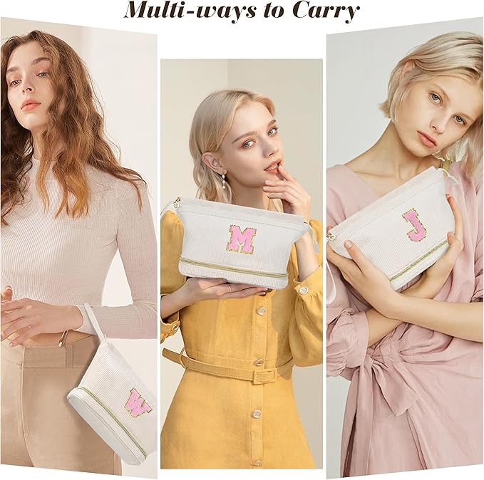 - 【26 Initials Design】The A-Z Letter designed with heart&love,It allows you to personalize the Initial Letter of your name printed on the gifts for her, print it on a gift for her to highlight your thoughtfulness and love. Composed of durable brushed letters and gold glitter, it makes the cosmetic bag look more distinctive. Durability is better than heat transfer printing.