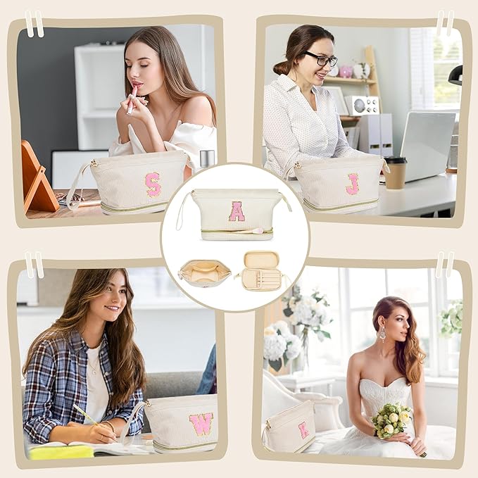 - 【26 Initials Design】The A-Z Letter designed with heart&love,It allows you to personalize the Initial Letter of your name printed on the gifts for her, print it on a gift for her to highlight your thoughtfulness and love. Composed of durable brushed letters and gold glitter, it makes the cosmetic bag look more distinctive. Durability is better than heat transfer printing.