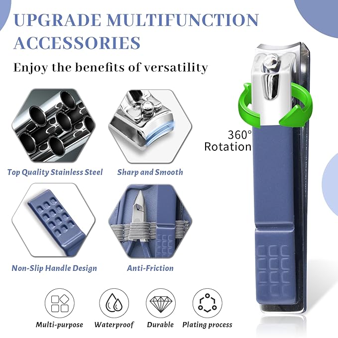 - Professional Nail Care Kit: Made of high-quality stainless steel, nail clippers are sharp and durable. Large, small, diagonal clippers can cut every corner of nails and trim thick/hard nails easily. The nail grooming kit is coated with an anti-rust blue coating, which is pretty and practical, and also not easy to rust.