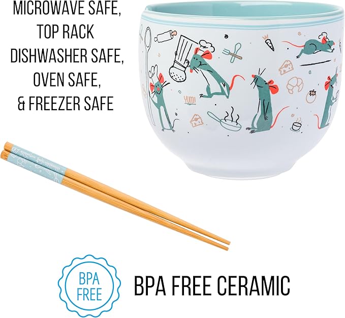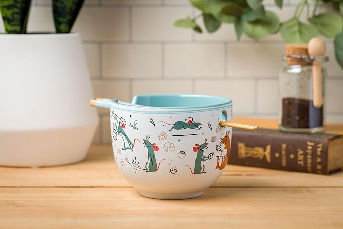 - RAMEN BOWL: Step up your ramen game with this awesome Ratatouille Multipose Boxed Ceramic Ramen Bowl with Chopsticks.