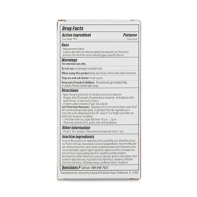 Absolutely Natural SPF 50 Mineral Sunscreen Stick with Rose Hips Oil, Cruelty Free and Reef Safe, Vegan Blend for Face and Body, Made in USA