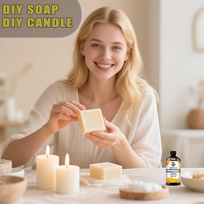- PACKAGING: Enjoy our premium Mango Essential Oil in a large 4 oz (120ml) UV-protected amber glass bottle – specially designed to block harmful light and preserve the oil's natural fragrance. The leak-proof dropper cap ensures mess-free use while locking in freshness. This generous size offers exceptional value compared to standard 1 oz bottles.