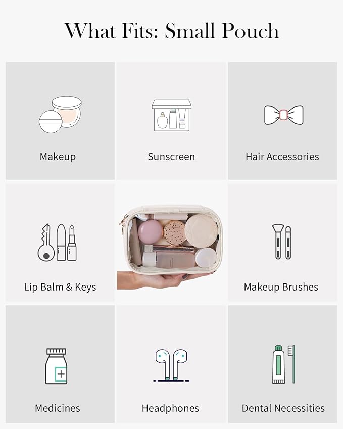 Pocmimut Makeup Bag,Small Makeup Bag TSA Approved Clear Toiletry Bag,Makeup Case Pouches Car Accessories Storage for Women,Travel Essentials Organizers,Beige