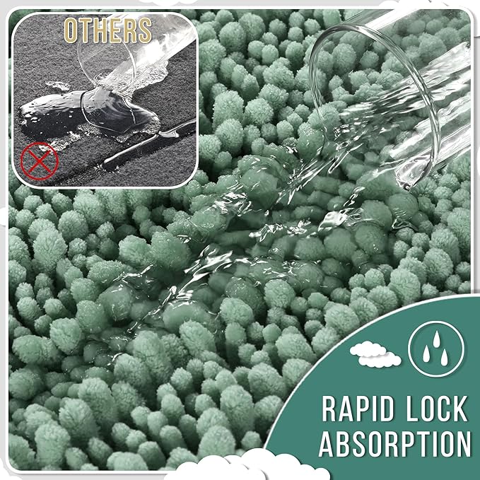 Yimobra Bathroom Rugs Non Slip Washable - Ultra Soft Absorbent Chenille Bath Mat, Quick Dry Shaggy Floor Carpet for Tub Shower, Green Home Decor Accessories, 24x17 Inch