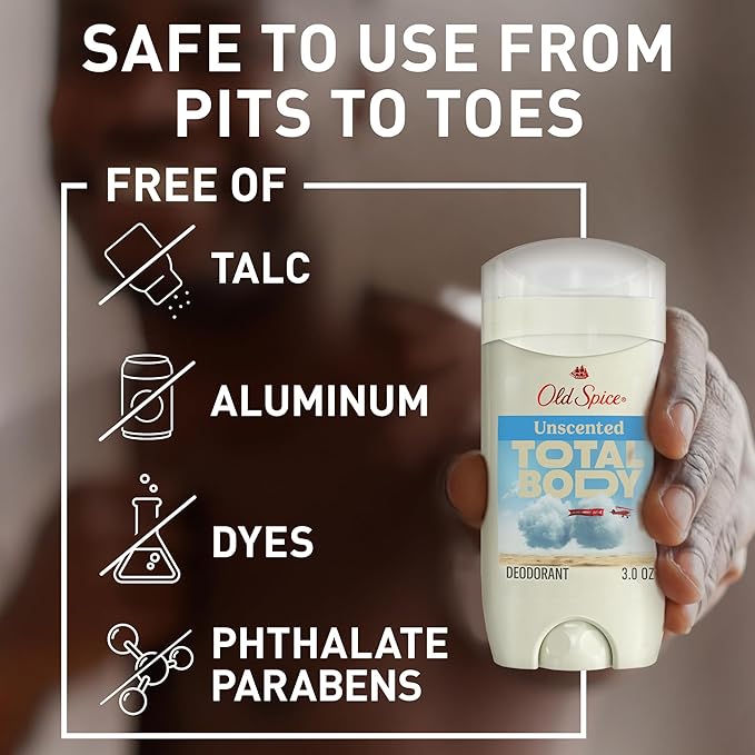 Old Spice Whole Body Deodorant Stick for Men, Aluminum Free, Unscented, 24/7 Odor Protection, 24/7 Lasting Freshness, Dermatologist Tested, Gentle on Skin, Safe to Use All Over, 3.0 oz