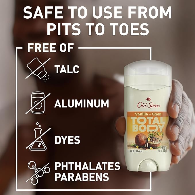 Old Spice Whole Body Deodorant Stick for Men, Aluminum Free, Vanilla + Shea Scent, 24/7 Odor Protection, 24/7 Lasting Freshness, Dermatologist Tested, Gentle on Skin, Safe to Use All Over, 3.0 oz