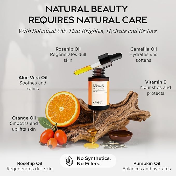 ZAAINA Extra Glow Face Serum - Natural Hydrating Glow Face Oil, Moisturizing Lightweight Oil for Dry, Dull & Sensitive Skin, Ayurvedic Moisturizer & Natural Primer for Makeup for all Skin Types - 1 oz