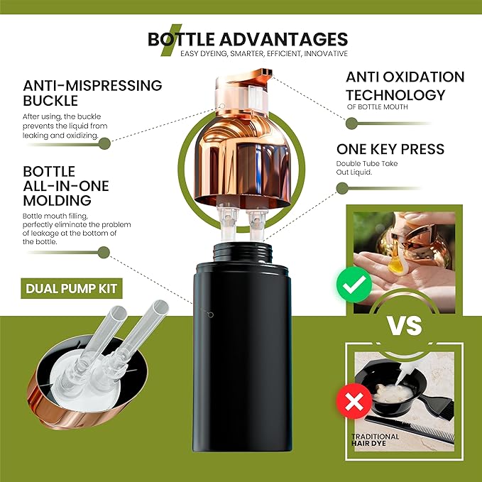 - 【EASY TO USE AT HOME】 No need to spend hundreds of dollars at a hair salon and no need for bowls and brushes as other traditional hair dyes. In the comfort of your home, achieve excellent hair coloring results that last for 6-8 weeks. Available in 10 different colors. A 500ml bottle of HERBBY is sufficient for up to 12 applications! Suitable for all types of hair, for Women & Men, Eyebrows (away from your eyes), and Beard