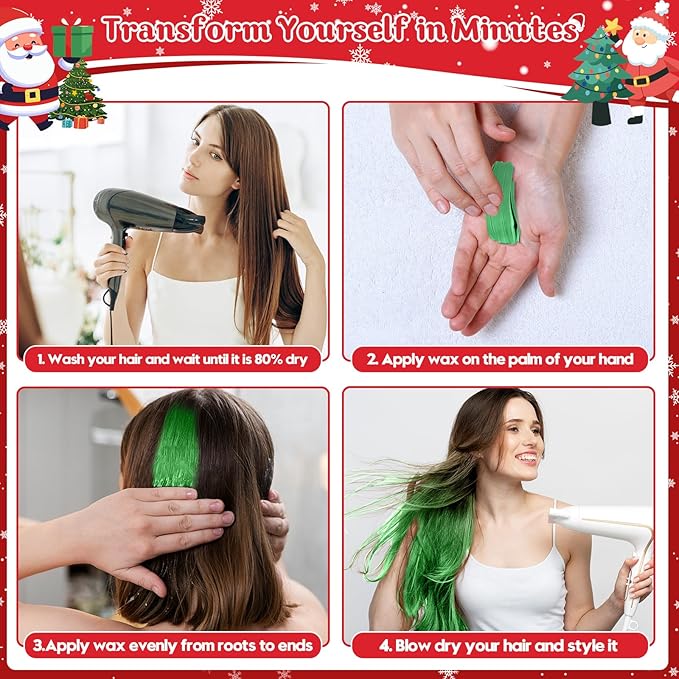 - 【Perfect Christmas Gift for Girls & Stocking Stuffers for Kids】Temporary hair color wax is widely used, unisex hair wax can be used for daily use, St. Patrick's Day, Halloween, Christmas, Carnival, Holidays, Parties, Singles, Events, Nightclubs, Carnivals, Masquerades, Clubs, christmas stocking stuffers, cosplay, Children's Day, Mother's Day. Good makeup gifts for girls friend.
