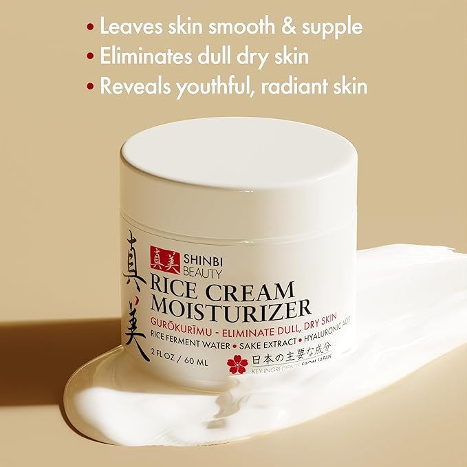 Japanese Skincare Moisturizer for Face - Rice Cream With Rice Ferment + Sake Extract - J Beauty Natural Asian Skincare Products 2oz