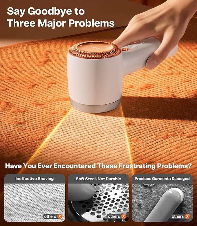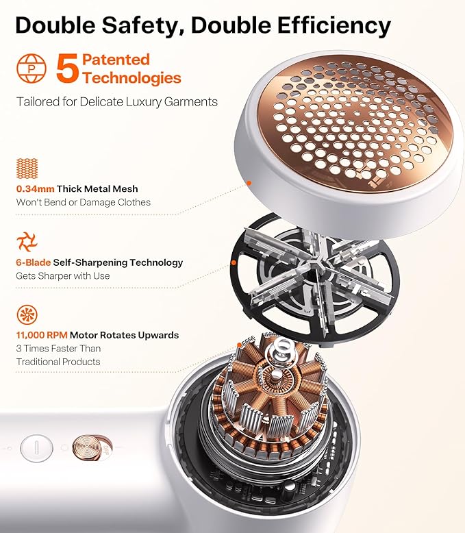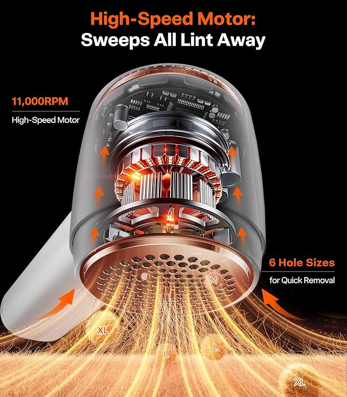 - 🧣 [Triple Safety Protections] Protect your luxury clothing with triple safety protection mode. Once you open the net cover and lint container, the lint shaver rechargeable will automatically cut off the power to ensure the fabric's good condition and your safety. The electric lint remover for clothes maintains a safe distance between fabric and blades with the suck-shave technology, preventing clothing damage. Revitalize the fabrics in your cozy home with a brand new freshness.