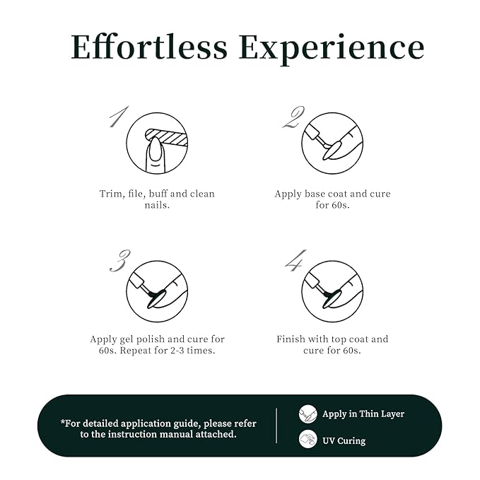 - Fast and Simple Nail Polish: MAYCHAO Gel polish must be cured under an LED light. It is necessary to apply a base and top coat. Average LED light duration is 60-120 seconds. Simple application and tenacity.