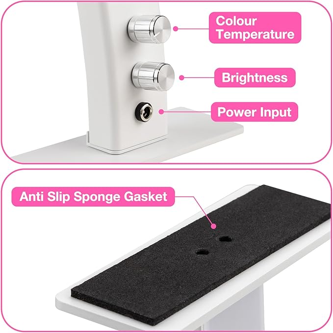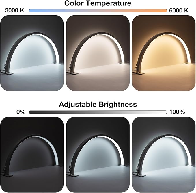 - ๐๐ใArc Design Reduces Shadowsใ-- Thereโs no shadows around anything youโre working on under this half moon light which makes it a perfect light not just limited to nail art, but also reading, knitting, soldering, painting, crafting, etc. Would also be very helpful in lighting small products for photos or working on crafts or art projects. It's a must-have for anyone who values precision and quality in their beauty and skincare routines.