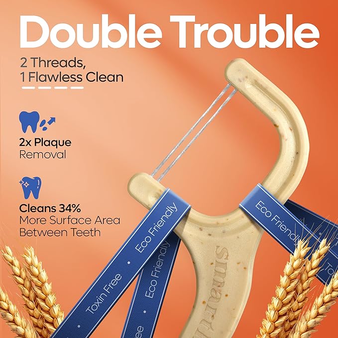 - โป๏ธ ORIGINAL STRAW WHEAT BLEND: We're The First To Introduce Flossers Made from a Mixture of Straw Wheat (Gluten-Free!) and PLA, a Plant-Based Plastic Made from Renewable Resources. Even the Packaging Is Made from Recyclable Materials, Giving You the Best Floss Stick Alternative for Your Teeth.