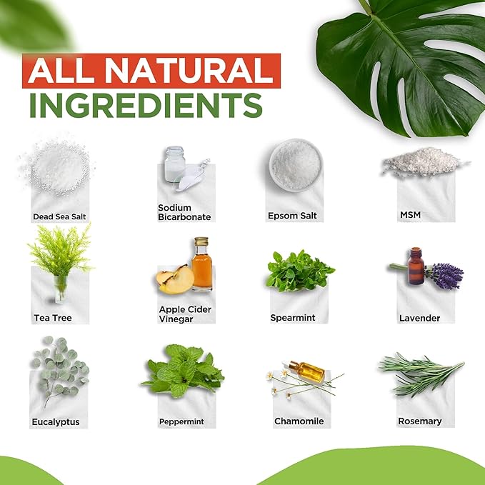 - ๐ฟ EXTRA STRENGTH PROPRIETARY BLEND FORMULA - Daily Remedyโs extra strength foot soak is a premium blend of Sea Salt, Epsom Salt, Baking Soda, Vitamin E, MSM, Apple Cider Vinegar, Vitamin C, Tea Tree Oil, Eucalyptus Oil, Spearmint Oil, Lavender Oil, Rosemary Oil, Chamomile Oil, Peppermint Essential Oil. It is designed to be a refreshing and revitalizing treat for your feet after a long day at work or school.