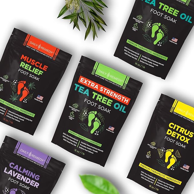 - ๐ BRING THE PEDICURE SPA TO YOUR HOME - Whether you maintain an active lifestyle with workouts, sports, or outdoor activities, or simply want to indulge in relaxation, Daily Remedy's tea tree oil foot soak provides a convenient way to pamper your tired feet. Enhance your experience by bundling your purchase with our collapsible foot basin and enjoy savings.