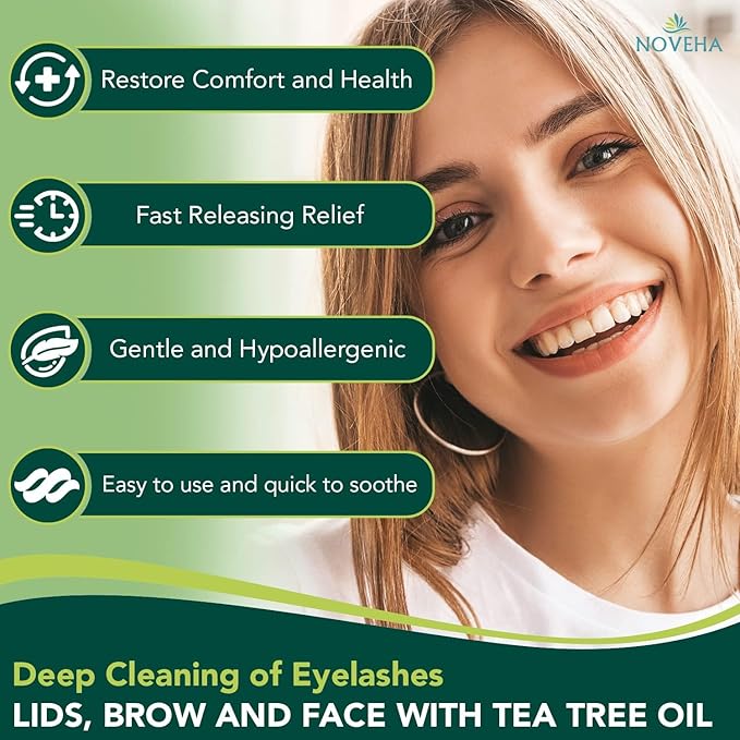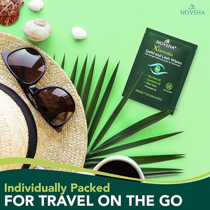 NOVEHA Demodex Eyelid & Lash Wipes | Box of 60 Individually Wrapped Extra Strength Cleansing Eyelash Wipes - Battles Irritated Eyes - Naturally Remove Debris (Pack of 2)