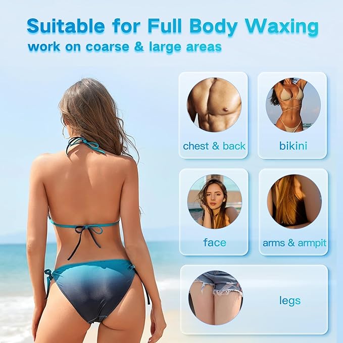 - 【IDEAL FOR FULL BODY】Wax beads work on coarse areas and large areas like Brazilian bikini area, moustache, beard, armpit, legs, arms and back etc. Make you enjoy nearly pain-free, stripless flawless hair removal, you can achieve smooth and hairless skin in minutes with less discomfort.