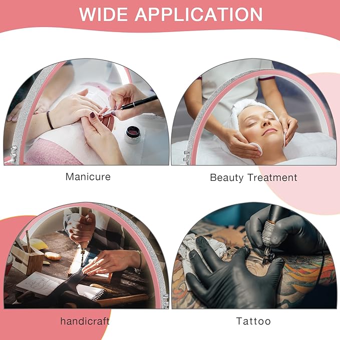- 【Wide Application】Half moon lamp allows you to position the aesthetic light perfectly for any workplace at any time. The table led light is suitable for professional nail artists, beauticians, tattoo artists, eyelash extensions and aestheticists to avoid shadows. It can also be easily used for crafts and care.