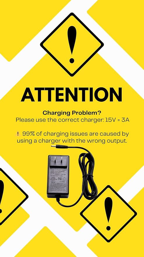 - ATTENTION: E1 Errors Indicate Low Battery. Please Charge Using the Correct Charger with an Output of 15V 3.0A. This Device Will Not Work with the Nail Drill Charger, Which Has an Output of 12V 2.0A.