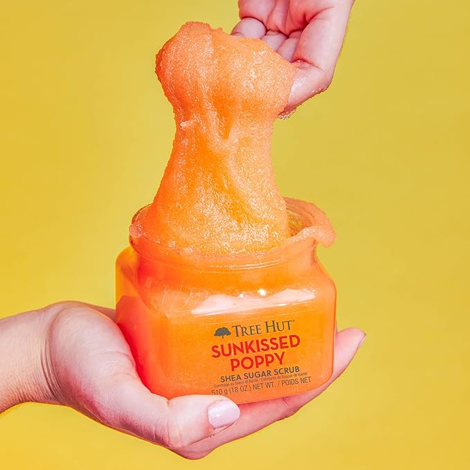 Tree Hut Sunkissed Poppy Shea Sugar Scrub, Exfoliating, Hydrating & Moisturizing Body Scrub with Shea Butter & Nourishing Essential Oils, Smooth & Soften Skin, 18 oz
