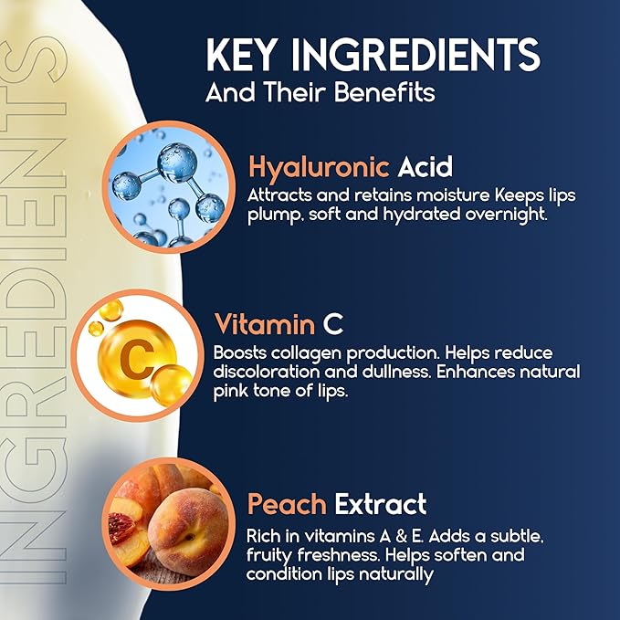 Lip Mask Overnight with Hyaluronic Acid & Collagen, Lip Sleeping Mask for Dry Cracked Lips, Moisturizing, Hydrating, Exfoliating Night Treatment for Lip Care (Peach) (0.7, Peach)
