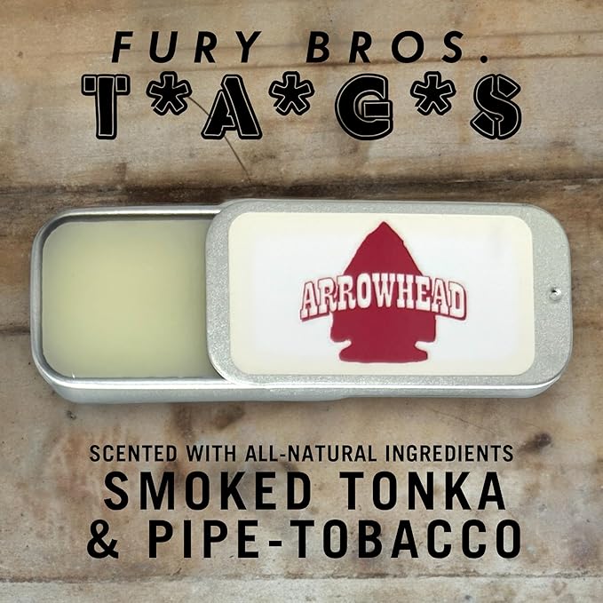 FURY BROS. TAGS Men’s Solid Cologne | Arrowhead | Smoked Tonka & Pipe Tobacco | Beeswax Grapeseed Oil Fragrance | Made in USA | Travel Size .25 oz