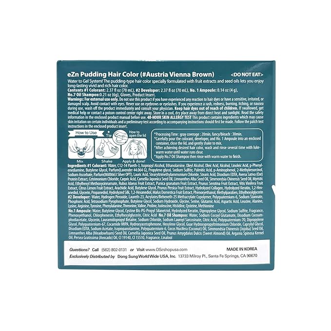 eZn Pudding Hair Dye, Ammonia-Free, Semi-Permanent DIY Korean Hair Dye Color with Keratin, Odorless Gentle for Sensitive Skin No Skin Irritation (Vienna Brown)
