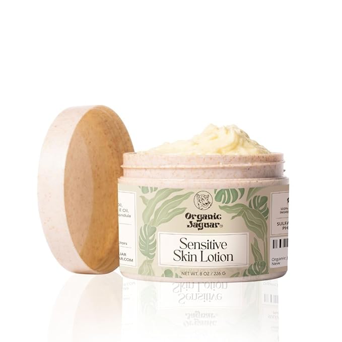 Organic Jaguar Natural Body Lotion for Sensitive Skin, Scent Free, Sulfate & Paraben Free Body Care, Moisturizer With Essential Oils, Vitamin E Oil, Beeswax, Extra Virgin Olive Oil, Raw Honey, 8 oz