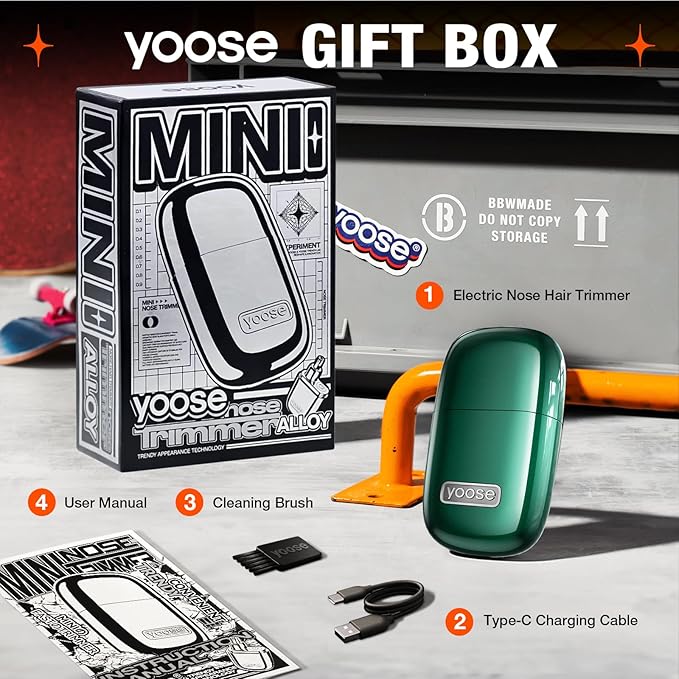 - STYLISH PORTABLE DESIGN- yoose Trendy Portable Nose Hair Trimmer 2.0 - ALLOY MODEL. The body is made of alloy, original curved design and plating process to create a delicate mirror texture. Comfortable grip and precise trimming. Pocket size, portable, always protect your face.