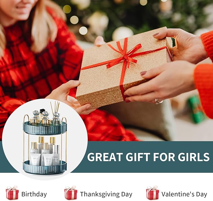 - 🎀【Multi-occasion uses】This turntable organizer can be used as: a perfume holder organizer, bathroom organizer countertop, nail polish organizer, dresser organizer countertop, skin care organizer, spice racks, fruit case, etc. The bedroom, bathroom, closet cabinet, kitchen, dresser, office, or countertop are good places to place it