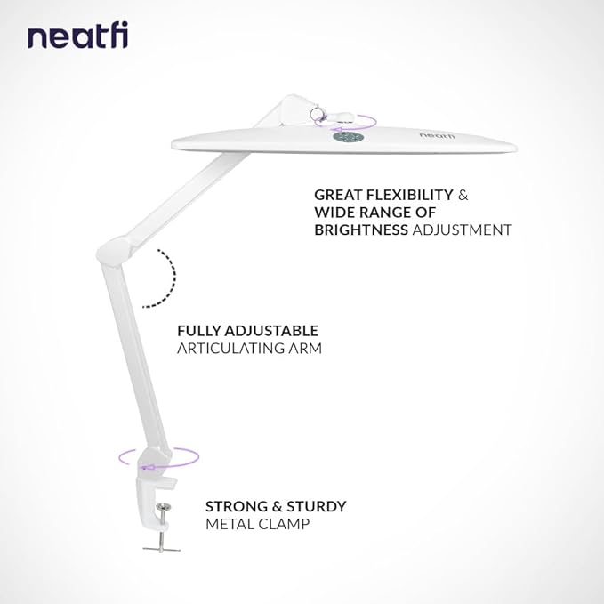 Neatfi Elite HD XL Task Lamp, 3 Adjustable Light Modes, 22 Inches Wide, 2260 Lumens, 84PCS SMD LED, Super Bright Desk Light, Non-Polar Dimming (CCT with Clamp, White)