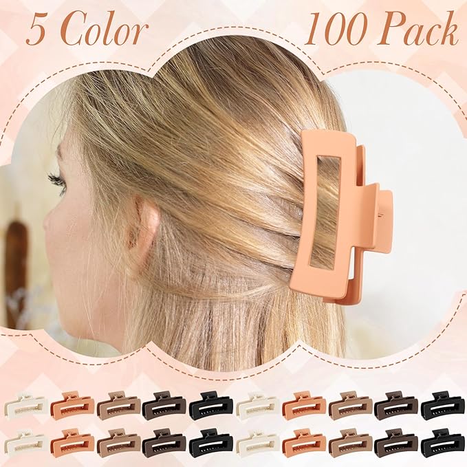 XunYee 100 Pcs Hair Claw Clips Bulk Large Square Jaw Headwear Clips Set for Women Nonslip Rectangle Hair Accessories Clip for Girl Women Gifts Beauty(4.1'',Classic Colors)