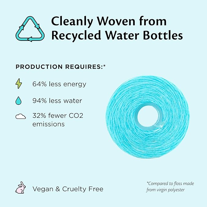 - PLANET-FRIENDLY AND CRUELTY-FREE: Cleanly spun from ~85% recycled water bottles; refillable dispenser; less waste than plastic picks and flossers; free of parabens and sulfates; no irritating flavors; Leaping Bunny–certified cruelty-free.