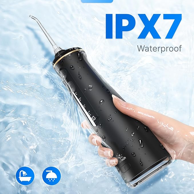 - Large 300ML Water Tank and Detachable Base: Recommended by dental experts, the Dada-Tech water flosser features a large 300ML (10 ounces) water tank that allows for cleaning the entire mouth with just one fill. The removable base cover facilitates thorough cleaning and drying, reducing microbial growth by 28% compared to traditional cup-style reservoirs. Additionally, with an IPX7 waterproof rating, it can be safely used in the bathtub and shower when the charging port is covered.