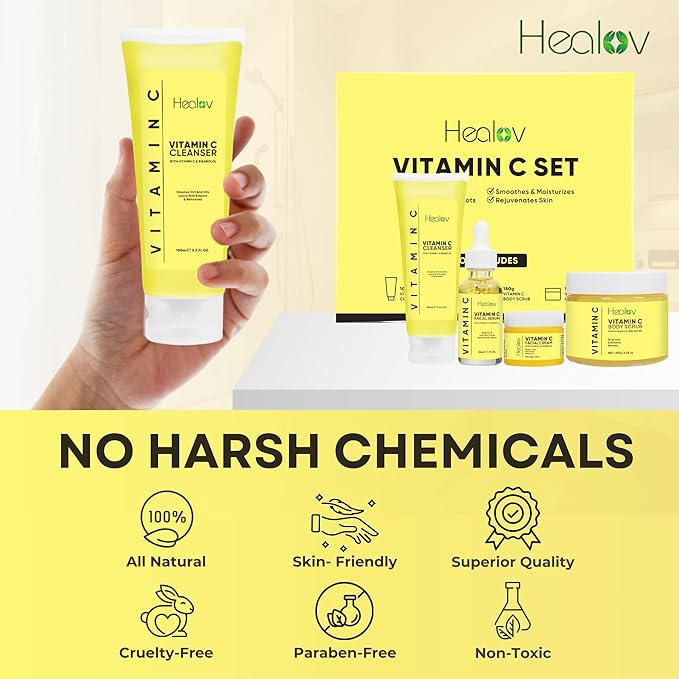 - MAKES A TERRIFIC GIFT IDEA: Containing four full-size vitamin C skincare products, this head-to-toe skincare set makes a fabulous gift for yourself or someone else. Give the gift of brighter, more beautiful skin with Healov!