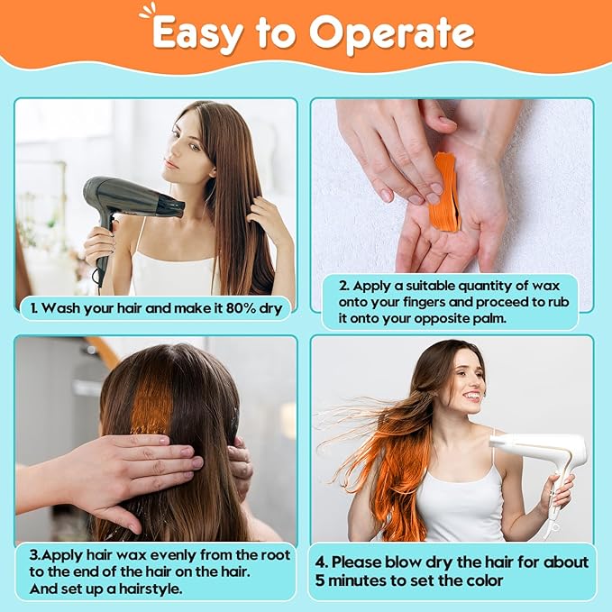 - โก๏ธ 5-Minute Color & Style: Achieve vibrant Orange in one application โ no bleach or chemicals. Washes out completely, zero sticky residue.
