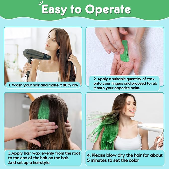 - โก๏ธ 5-Minute Color & Style: Achieve vibrant Green in one application โ no bleach or chemicals. Washes out completely, zero sticky residue.