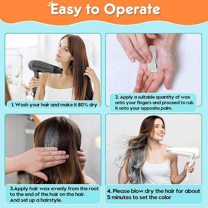 - 【Natural Ingredients Safe】This hair wax color is crafted from natural plant extracts, ensuring no irritation or harm to your hair. Safe for use by both adults and children.