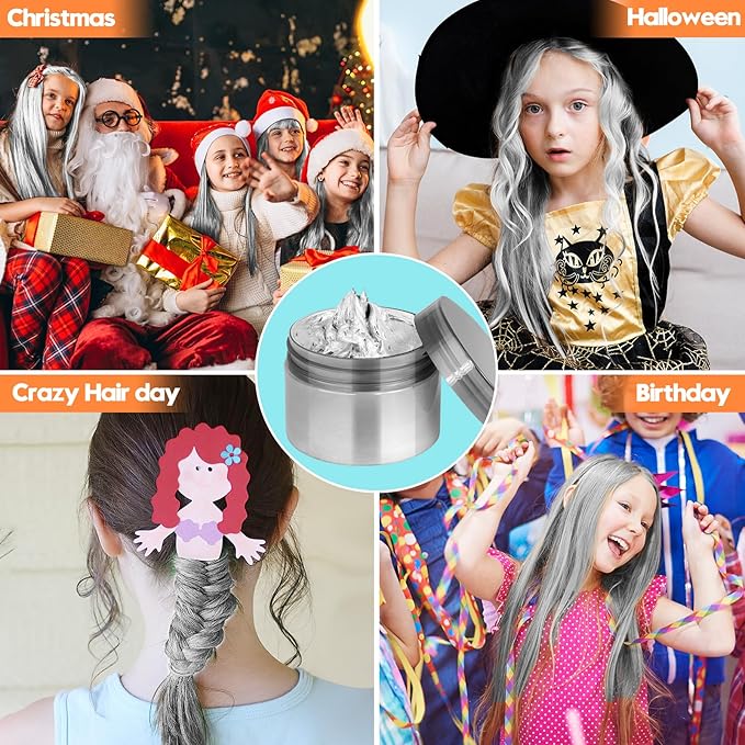 - 【Ideal for Any Occasion】 Unleash your little girl's creativity with this ideal gift of these hair wax colors. Paired with the accessories, you can get a unique hairstyle, this color hair wax is perfect for party hits on special occasions like birthdays, Halloween, Christmas, Crazy hair, St.Patrick's Day, festivals, cosplay shows, DIY parties, and more.