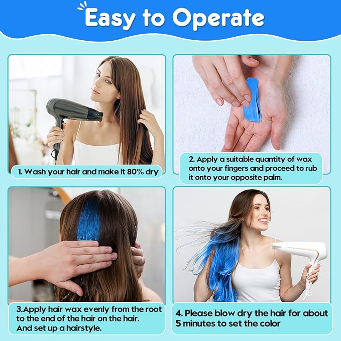 - โก๏ธ 5-Minute Color & Style: Achieve vibrant Blue in one application โ no bleach or chemicals. Washes out completely, zero sticky residue.