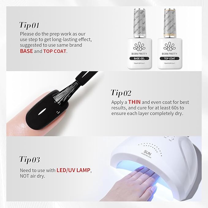 - Easy Application and Good Tenacity: The black gel nail polish set is long lasting for 21+ days with perfect shine under proper application - With base gel top coat under the full application process.