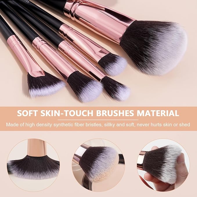 - PREMIUM SYNTHETIC FIBERS: Softer and more fluffy than ordinary makeup brushes, and the brush shape can perfectly mix and apply creams, powders and liquids. Non-irritating, cruelty free, even suitable for the most sensitive skin.