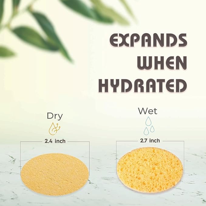 - ✅ECO FRIENDLY: These sponges are made of 100% natural cellulose, making them a guilt-free, fully biodegradable beauty product. When soaked in water, they become soft and gentle: perfect for removing makeup, pollution, and the day’s stress. These sponges are suitable for all types of skin and will make your skin glow.