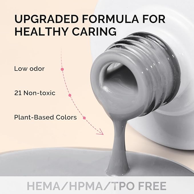 - Upgraded 3 Free Formula: 3 Free- Free of HEMA, HPMA, TPO. This gel nail polish is safer and less likely to trigger allergies. With 21 non-toxic ingredients(Free of 21 harmful chemicals such as heavy metals), this gel polish reduces the risk of nail damage. The low odor is very suitable for those who are sensitive to strong smells, ensuring a safer and healthier manicure experience.