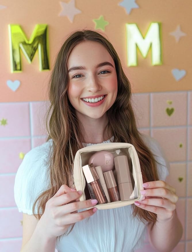 - PREMIUM QUALITY:This elegant clear makeup bag is crafted from high-quality PU leather with durability.The natural texture not only feels luxurious but also adds a touch of sophistication to your travel ensemble.