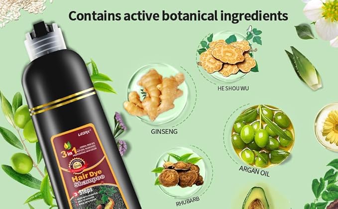 - Natural Ingredients - Leorx Upgrade hair coloring shampoo enriched with wild ginseng, he shou wu, da huang, and olive oil. Our shampoo not only provides vibrant, long-lasting color, but also nourishes and strengthens hair from root to tip. Say goodbye to harsh, damaging hair dye, and hello to healthy, beautiful hair with our natural.