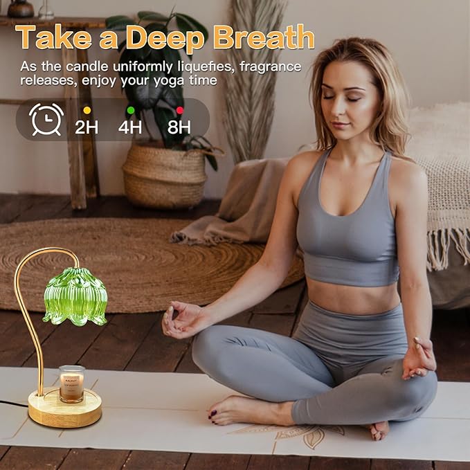 Dimmable Flower Candle Warmer Lamp, Green Candle Warmer with Timer & 4Bulbs, Birthdays Chirstmas Gifts for Women Mom, Unique Home Decor for Bedroom Fits All Jar Candle