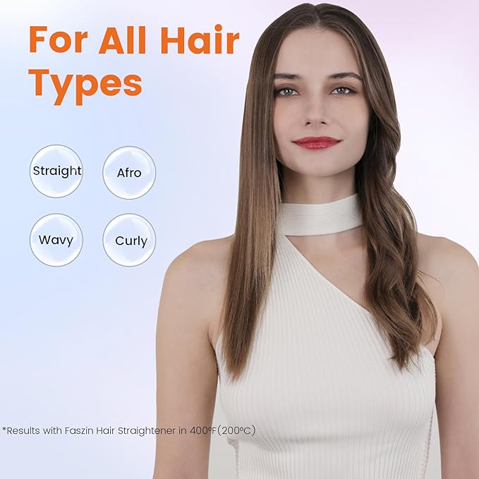 - ONE-PASS STRAIGHTENING: Titanium plate is 150% smoother than ceramic, makes styling easier; Faszin HeatSyncX temperature compensation tech reduces temperature drift, ensures heated evenly from root to end in just one stroke, and allows you to create style easier than ever.