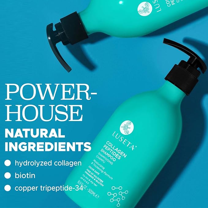 Luseta Thickening Shampoo and Conditioner Set with Collagen Peptides Strengthen and Moisturize for Thin & Dry Hair, Promote Thickness and Reduce Breakage for Fuller-Looking Hair 16.9oz×2